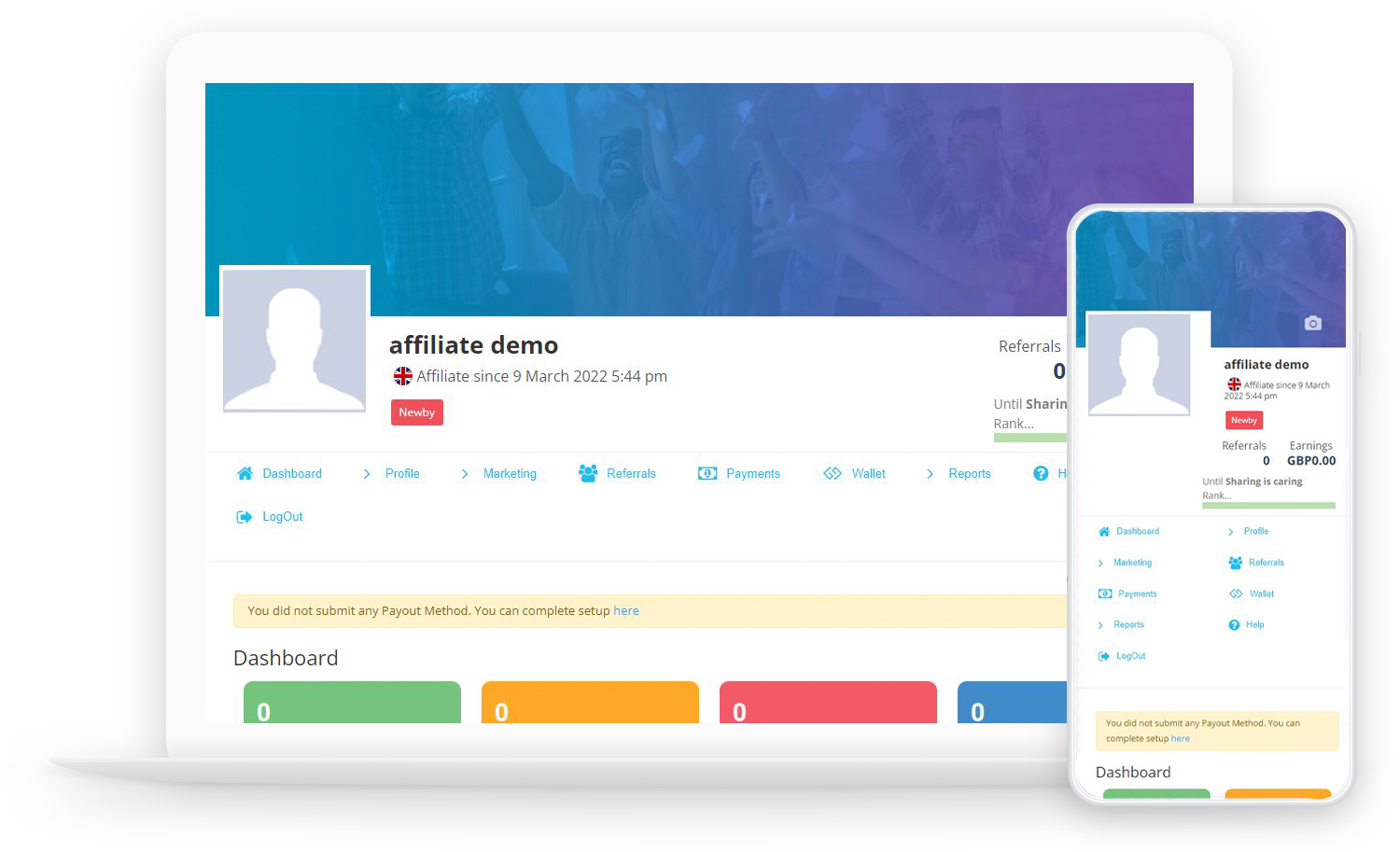 Each affiliate or partner will gain access to a full and concise personal dashboard that lets them know exactly how they are doing.